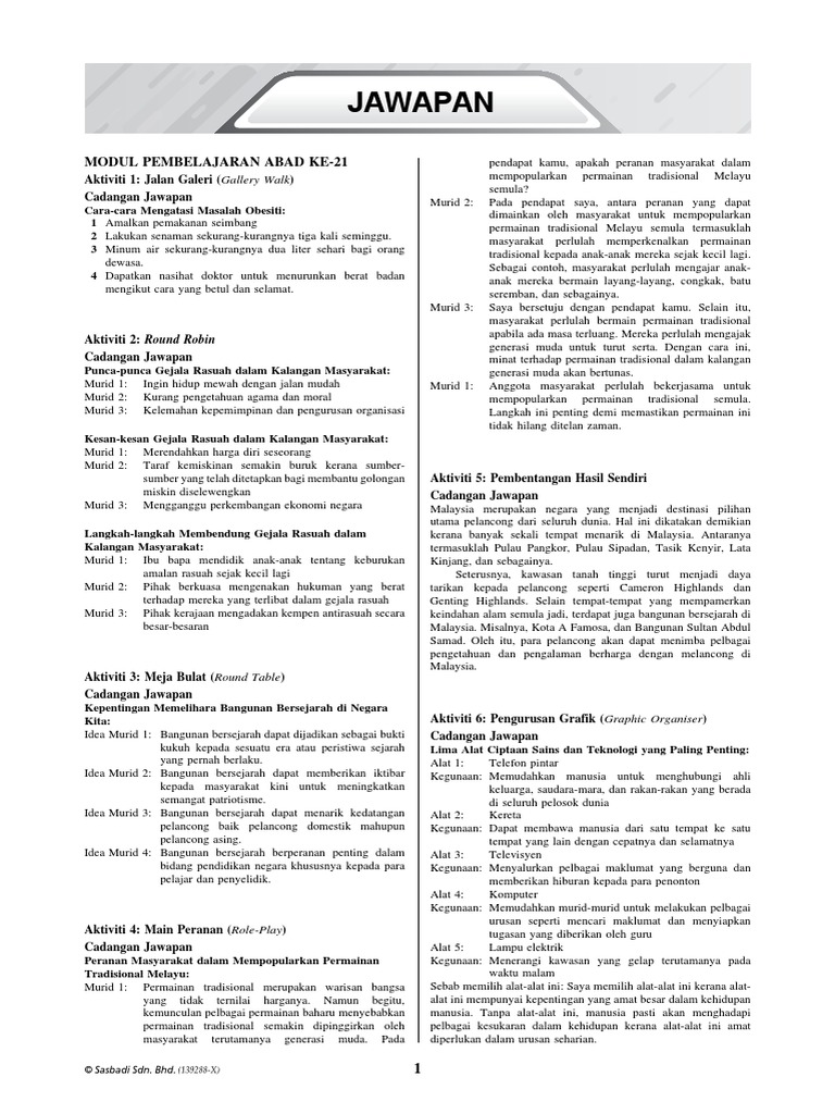 Jawapan Modul Aktiviti Pintar Bestari Bahasa Melayu Tingkatan 2 Pdf
